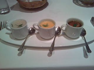 know only that hotels have soup (in) cups served on a white platter